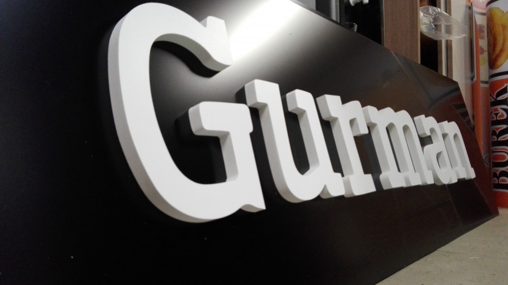 Označevanje poslovnega/prodajnega mesta. Tiskana izložbena nalepka za steklo z UV laminacijo. Reklamna tabla z trodimenzionalnim napisom (barvani forex 3cm).